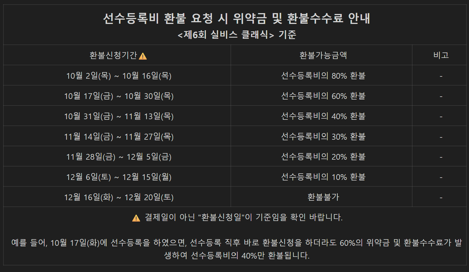 [선수등록] 제6회 실비스 클래식 | 🦾 정규선수등록 | 📅~12/8 오후 5시까지